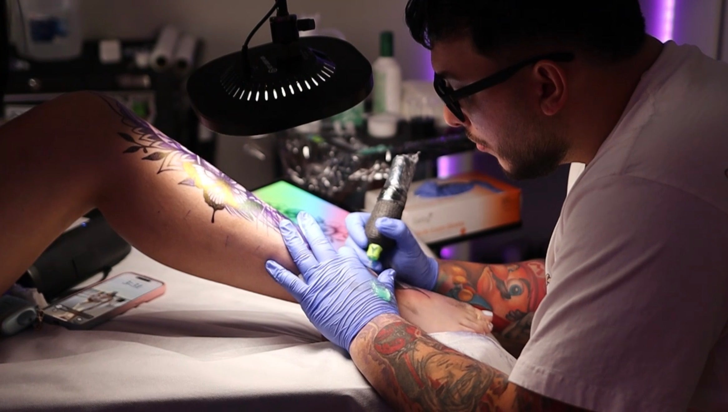 His approach combines clean lines, solid blacks, and vibrant colors, creating tattoos that stand out for their clarity and definition.